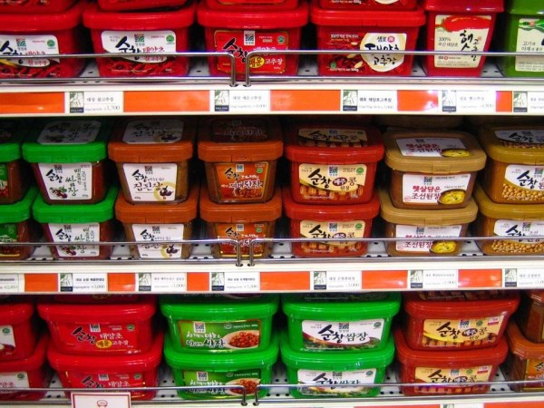 Korean soybean paste is often compared to Japanese miso. It is made by fermenting soybeans over a long period of time, sometimes taking years. A thick paste of ground soybeans is formed into blocks that are dried and fermented for months before being soaked in brine. The liquid brine is a by-product of making soybean paste a becomes a soy sauce specifically used for making soups. Doenjang has natural, pungent smell and is full of umami and nutty flavour. It is mainly used in soups and stews but is also common in sauces, dips and making side dishes. It’s usually sold in brown tubs at the Asian supermarket or Korean grocer. Store in the fridge and use within 3 months after opening.