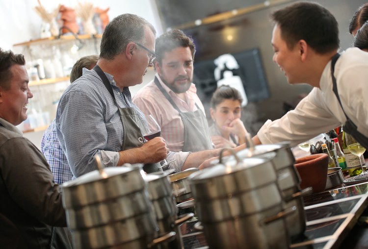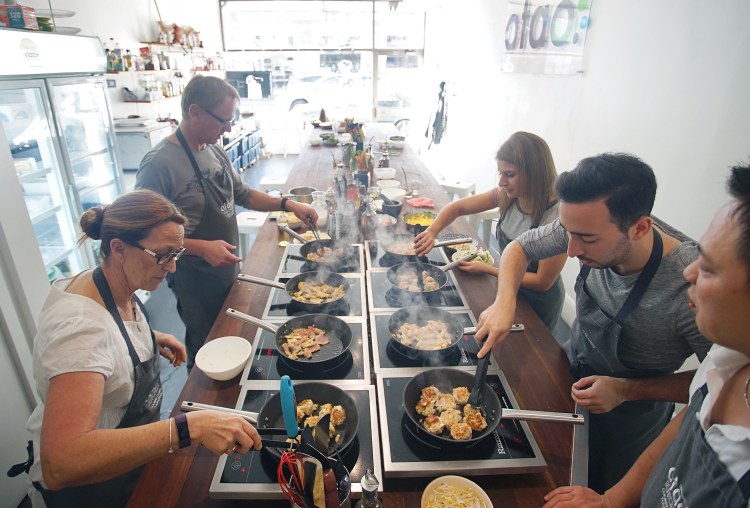 - We begin with a complimentary refresher while guests are arriving. Next, we prep for 1 hour. Then we together cook all the dishes. Finally, you and your guests can enjoy new flavors, exotic ingredients, cooking, drinking, eating and sharing your creations around a large kitchen table.