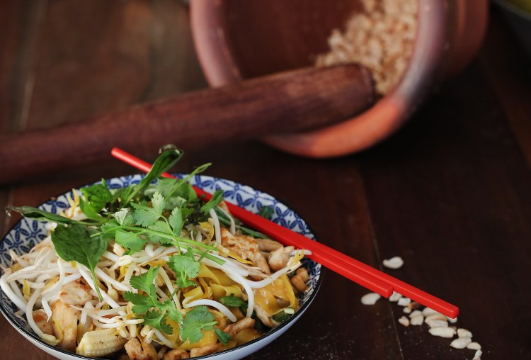 - Thai 1 with Chicken Glass Noodle Salad, Pad Thai Vegetarian (V), Thai Sweet Rice + Coconut