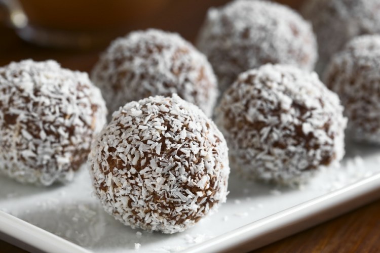 The date and coconut balls are great treat that can be made in advance and store in airtight containers. Dates are the fruit of the date palm tree, which is grown in many tropical regions of the world. You can tell whether or not dates are dried based on their appearance. A wrinkled skin indicates they are dried, whereas a smooth skin indicates freshness.